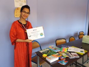 Kaoutar Lakhr from Lycée Ibn Sina in Biougra (Agadir), won with her story The Garbage Monster.