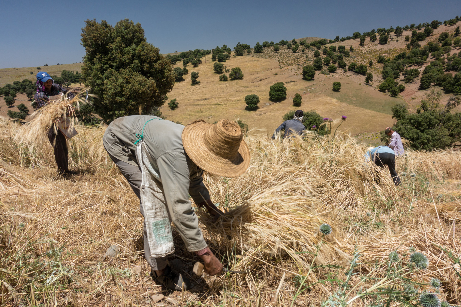 Brahim lives in a small village near Aït M’hamed in the High Atlas, where he has been cultivating barley for years. During the harvest season, Which is usually around May, he joins efforts with other farmers following an old Amazigh tradition called ‘Tiwizi‘, during which labour-intensive activities such as manual harvesting are carried out in a group.