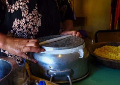 Aïcha is a member of the women’s cooperative in Timgharine Imegdal. The main activity of the cooperative revolves around the preparation of cakes, traditional bread and couscous with herbs such as thyme and rosemary. The women prepare these on the occasion of festivities, local festivals but they also prepare these products on demand. The cooperative produces about 100kg of different types of couscous per year, which requires ten days of drying for each preparation. The quantities produced are sold in local markets, as well as in Marrakech through a social enterprise called EthnoBotanica.